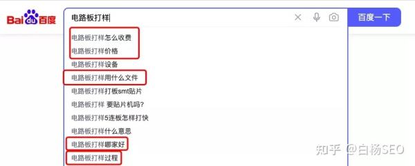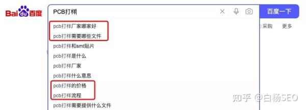 关于如何找到用户需求词,上面已经举例了,但同时,你也要以对自己业务要了解。比如白杨SEO以前做了PCB一个项目,其实PCB还有一个名字叫电路板,说电路板你可能还不知道,简单说就是电脑、手机、电视里面那个芯片板子,长下面这样,那些立起元器件不是哈。