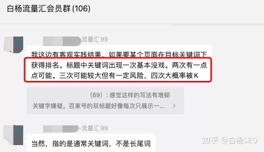 大家都知道,关键词密度是有助于SEO的,只是有些关键词密度过度刻意优化了,所以才会被降权。分享一下白杨流量汇里一个会员分享,如图: