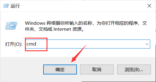 2 在搜索框里输入cmd——点击确定进入命令行页面