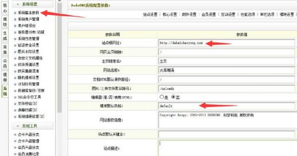 4、点击“系统基本参数”,填写信息(这块非常重要,有助于网站优化,网站的title就是这里完成)