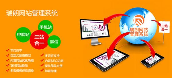 瑞朗网络历经两年,自主开发“三站合一”网站管理系统!三站合一是集PC网站、手机网站和微信网站为一体的一套建站管理系统,共用一个管理后台,一个虚拟主机,录入一次数据,三站数据自动同步,有效节约空间投资,降低人力维护工作量,同时拓宽营销渠道。