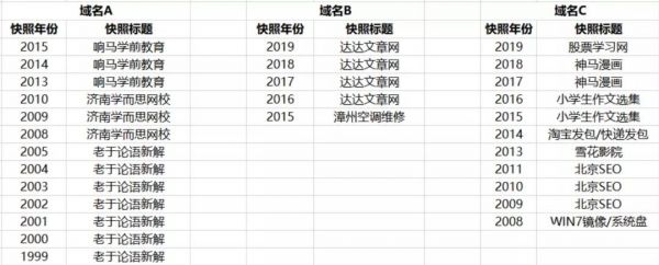 所以总结下,以上A、B、C三个老域名,域名历史建站时长更有参考价值的应为域名B,“至少最近4年内,有同一个站的建站记录”