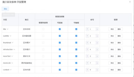 4、下面要说重点,小编认为这个才是区块功能的核心所在,可以根据区块内容来自定义设计区块表单,内容的呈现方式多种多样,如果不能自定义设计表单,那么区块功能基本职能算是半成品,下面看看pageadmin cms怎么解决这个难题。