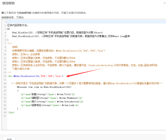 区块添加完毕后,可以在可视化编辑界面设置内容,也可以在管理界面设置内容,这里重点说一下数据调用,如下图: