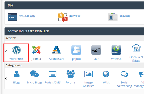 进入cpanel控制面板之后,拉到最底部,找到Wordpress,并点击进入