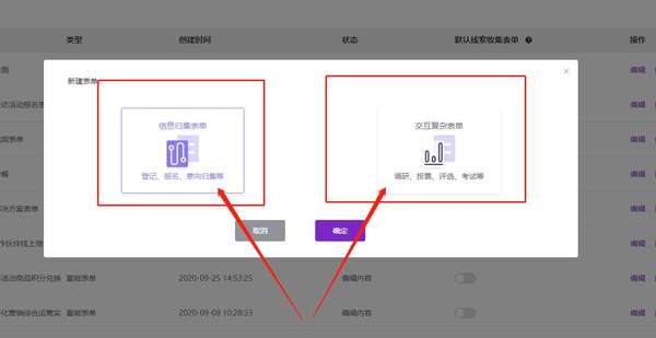 可以在表单管理栏创建普通信息归集表单和交互复杂表单两类;