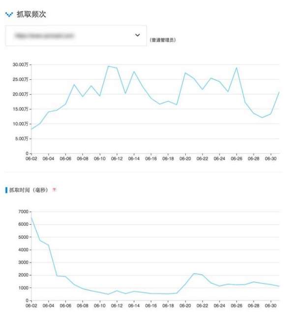百度站长平台和Google Search Console都有抓取数据。如下图某网站百度抓取频次: