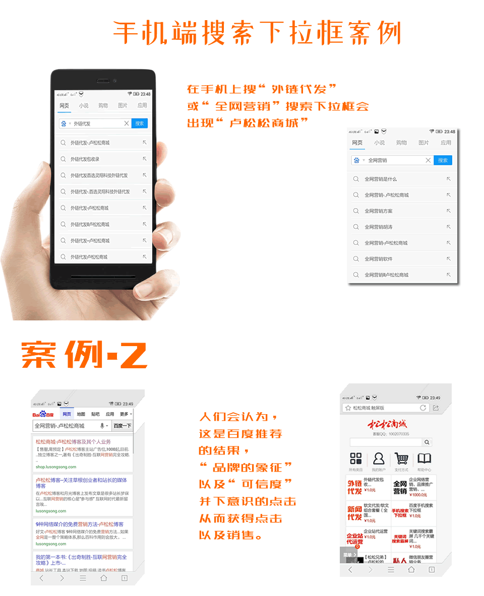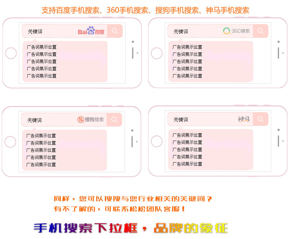 5)当人们在手机下拉框中,看到了您公司的品牌名或服务名时,会认为这是百度推荐的结果,这样就大大增强了品牌或服务的可信度,有利于迅速树立起企业的品牌形象。